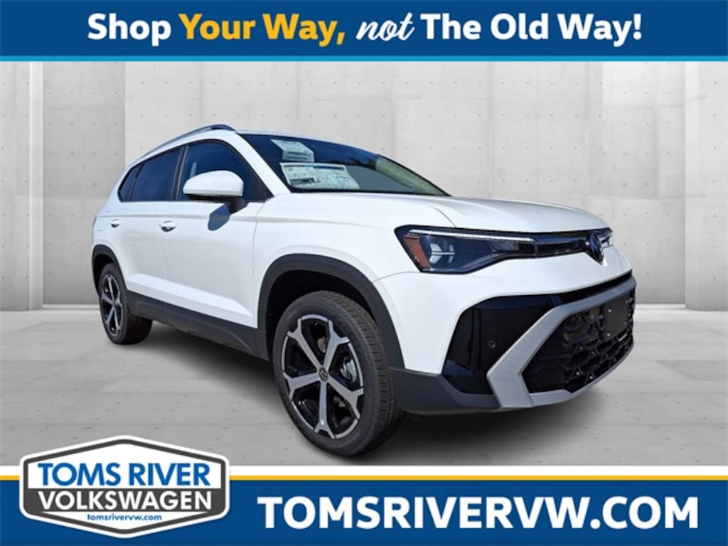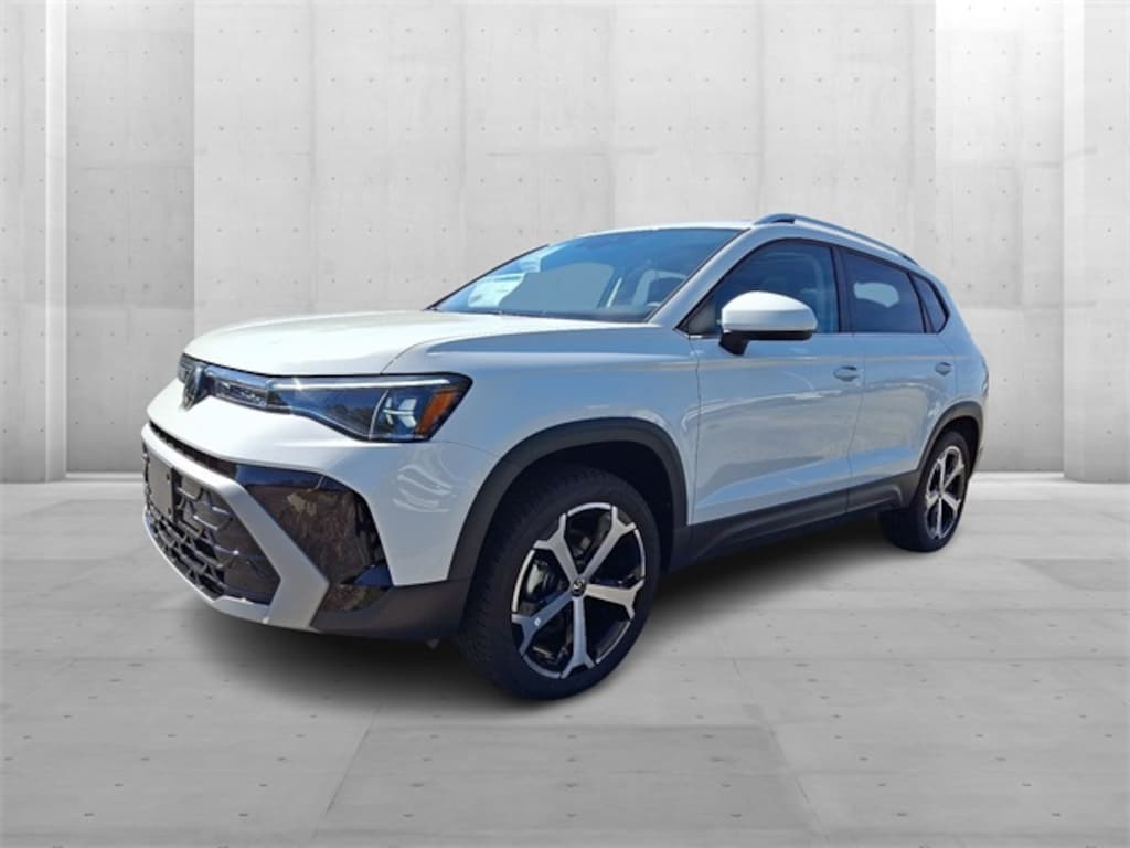Pure White 2025 Volkswagen Taos 1.5T SEL AWD 8-Speed Automatic with Tiptronic 1.5L I4 Turbocharged DOHC 16V LEV3-SULEV30 174hp