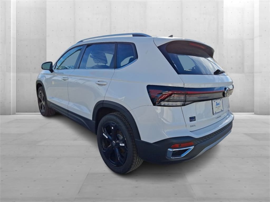 Pure White 2025 Volkswagen Taos 1.5T SEL AWD 8-Speed Automatic with Tiptronic 1.5L I4 Turbocharged DOHC 16V LEV3-SULEV30 174hp
