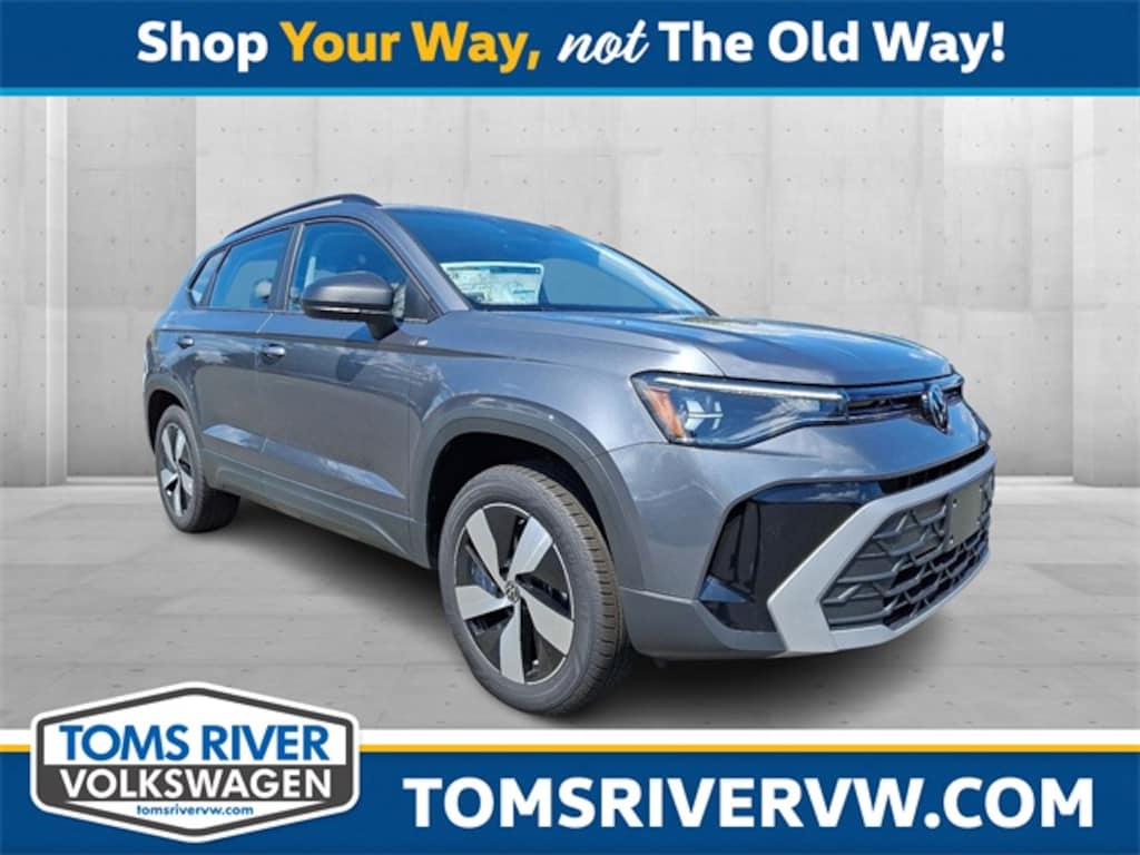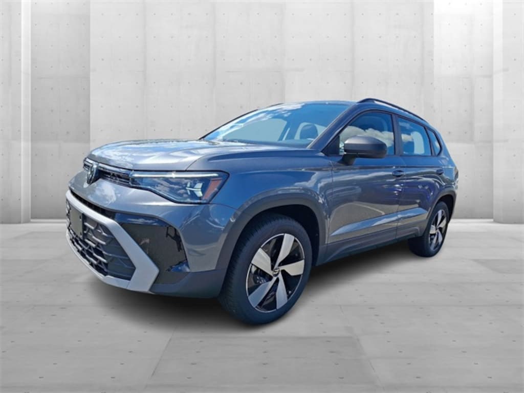 Platinum Gray Metallic 2025 Volkswagen Taos 1.5T S AWD 8-Speed Automatic with Tiptronic 1.5L I4 Turbocharged DOHC 16V LEV3-SULEV30 174hp