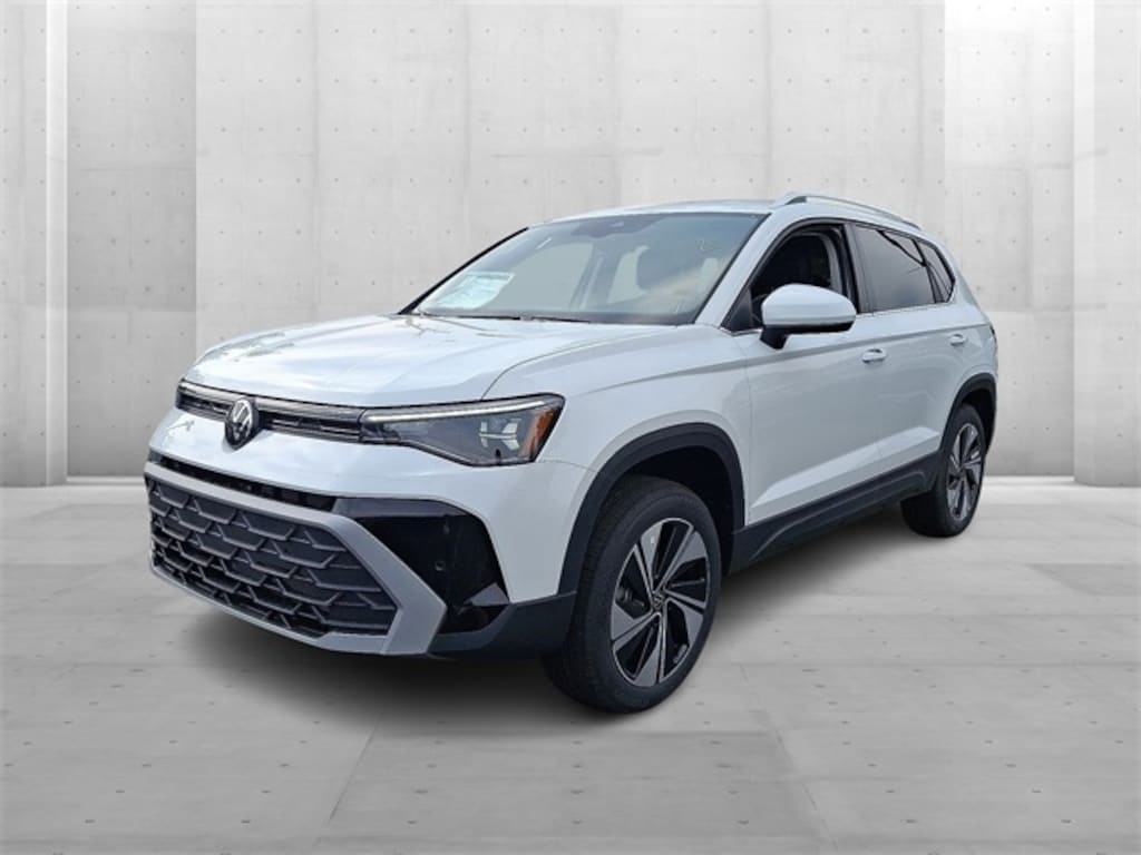 Pure White 2025 Volkswagen Taos 1.5T SE AWD 8-Speed Automatic with Tiptronic 1.5L I4 Turbocharged DOHC 16V LEV3-SULEV30 174hp