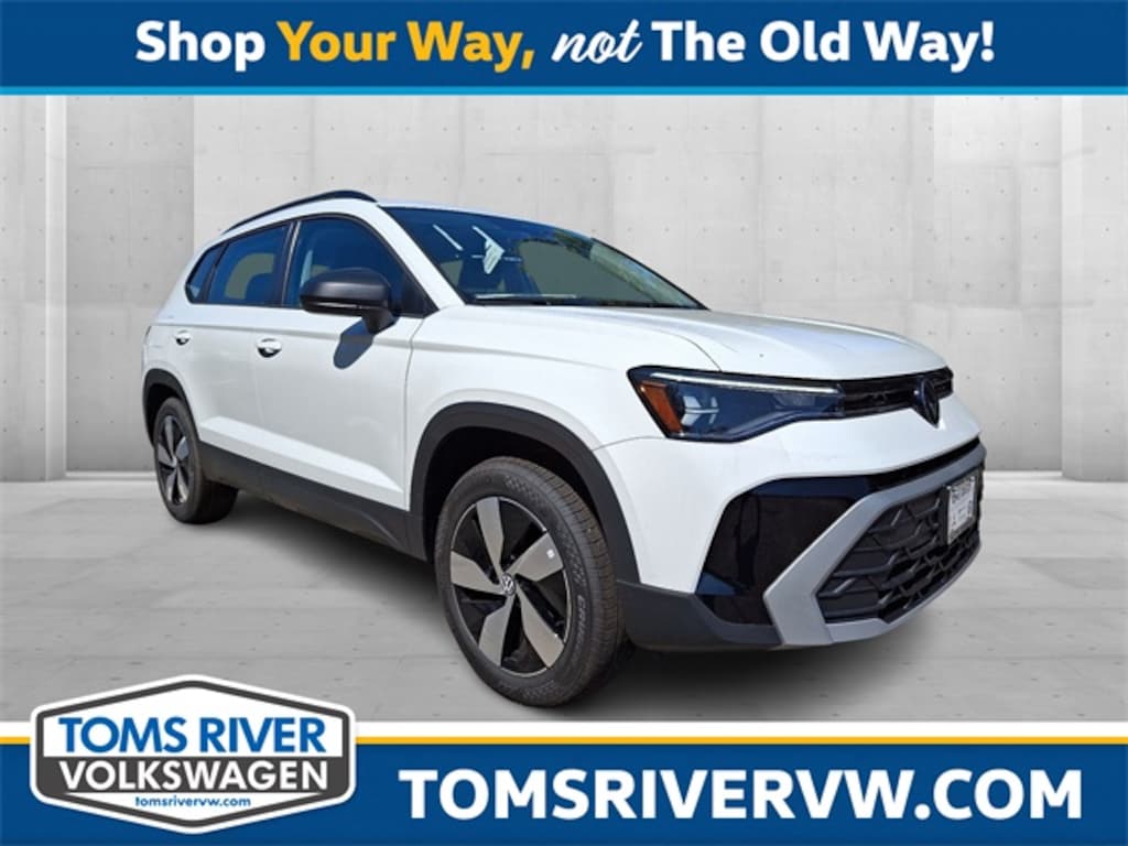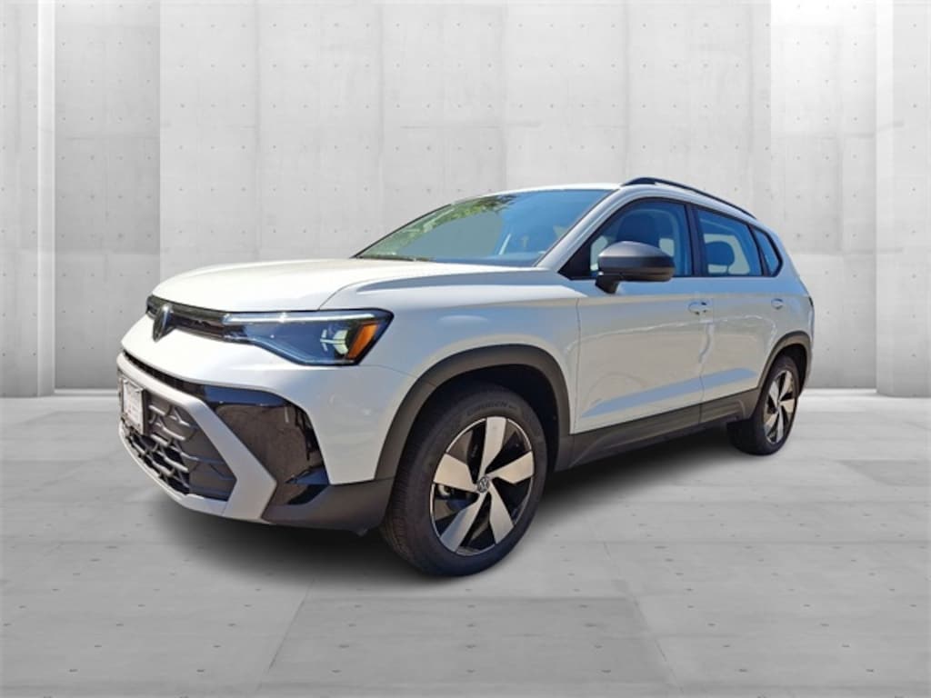 Pure White 2025 Volkswagen Taos 1.5T S AWD 8-Speed Automatic with Tiptronic 1.5L I4 Turbocharged DOHC 16V LEV3-SULEV30 174hp