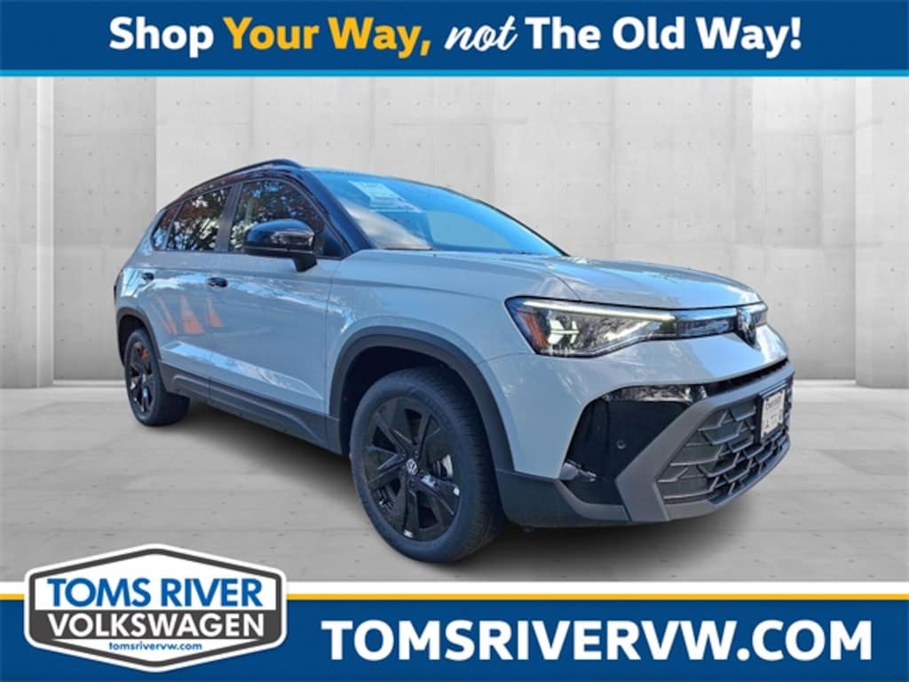 Monument Gray w/Deep Black Roof 2025 Volkswagen Taos 1.5T SE Black FWD 8-Speed Automatic with Tiptronic 1.5L I4 Turbocharged DOHC 16V LEV3-SULEV30 174hp