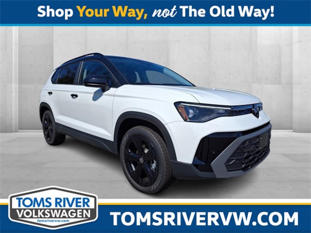 Pure White w/Deep Black Roof 2025 Volkswagen Taos 1.5T SE AWD 8-Speed Automatic with Tiptronic 1.5L I4 Turbocharged DOHC 16V LEV3-SULEV30 174hp