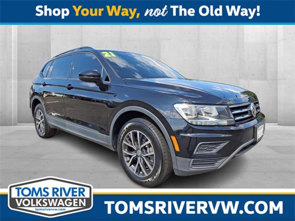 This 2021 Volkswagen Tiguan 2.0T S in Deep Black Pearl features: 2.0L TSI DOHC 8-Speed Automatic with Tiptronic AWD CARFAX One-Owner. Clean CARFAX. Certified.