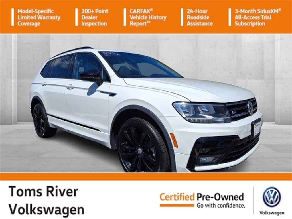 This 2021 Volkswagen Tiguan 2.0T SE R-Line Black in Pure White features: 2.0L TSI DOHC 8-Speed Automatic with Tiptronic AWD