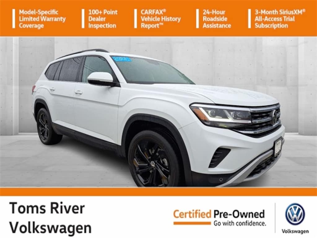 This 2022 Volkswagen Atlas 3.6L V6 SE w/Technology in Pure White features: 3.6L VR6 8-Speed Automatic with Tiptronic AWD CARFAX One-Owner.