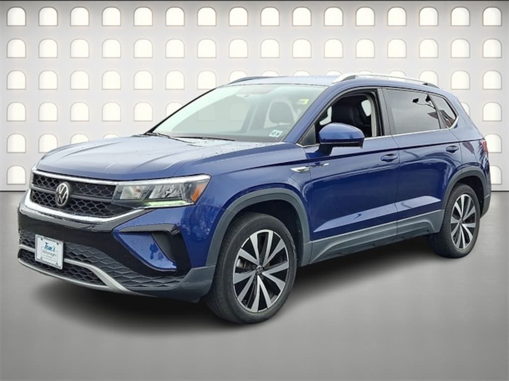 New Price! Dusk Blue Metallic 2022 Volkswagen Taos 1.5T SE AWD 7-Speed DSG Automatic with Tiptronic 1.5L I4 Turbocharged DOHC 16V LEV3-SULEV30 158hp