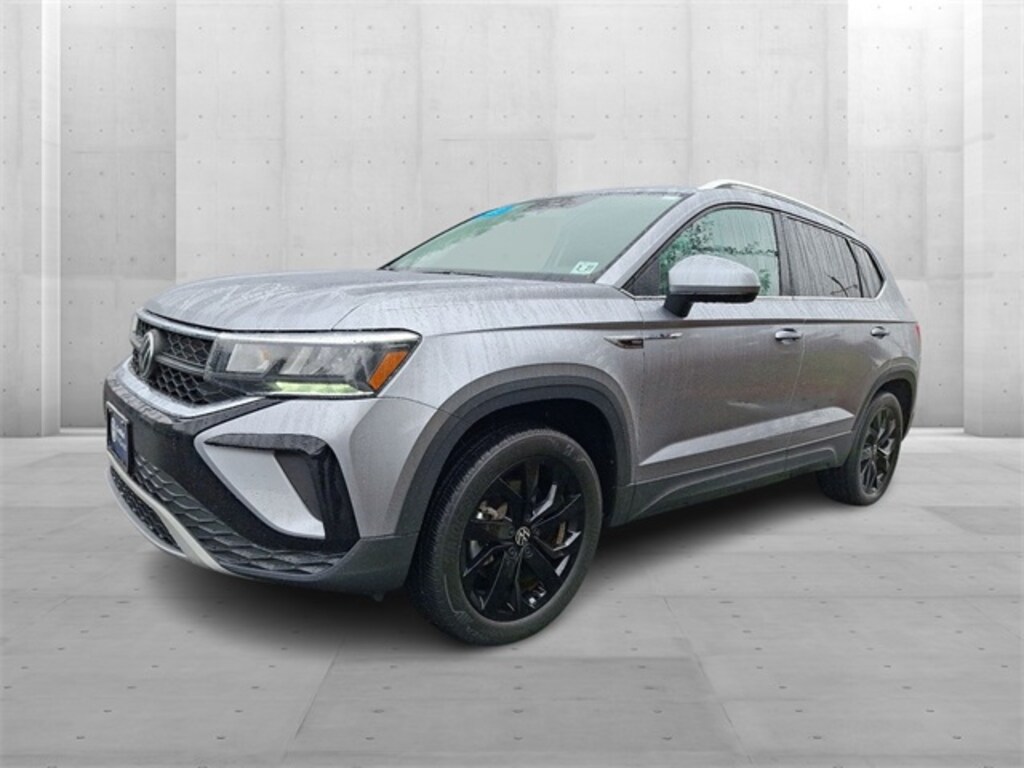 This 2022 Volkswagen Taos 1.5T SE in Pyrite Silver Metallic features: 1.5L I4 Turbocharged DOHC 16V LEV3-SULEV30 158hp 7-Speed DSG Automatic with Tiptronic AWD CARFAX One-Owner.