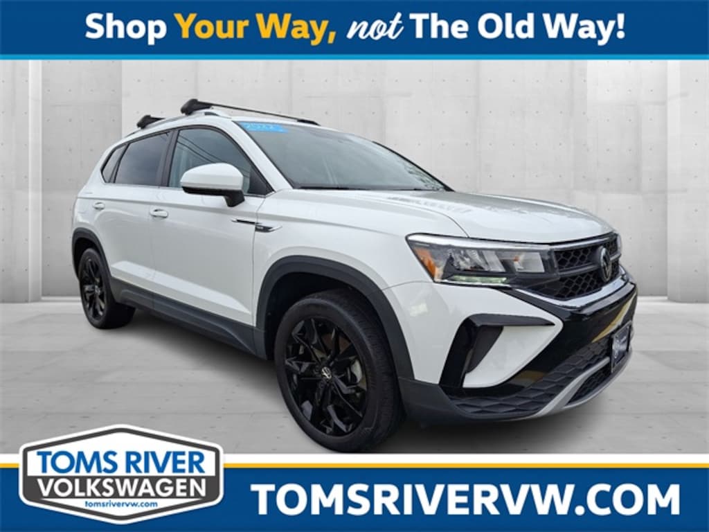 This 2022 Volkswagen Taos 1.5T SE in Pure White features: 1.5L I4 Turbocharged DOHC 16V LEV3-SULEV30 158hp 7-Speed DSG Automatic with Tiptronic AWD CARFAX One-Owner. Clean CARFAX.
