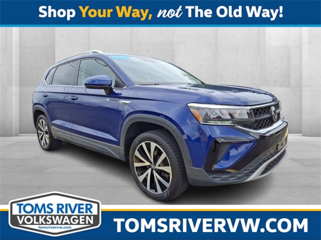 This 2022 Volkswagen Taos 1.5T SE in Dusk Blue Metallic features: 1.5L I4 Turbocharged DOHC 16V LEV3-SULEV30 158hp 8-Speed Automatic with Tiptronic FWD CARFAX One-Owner. Clean CARFAX.