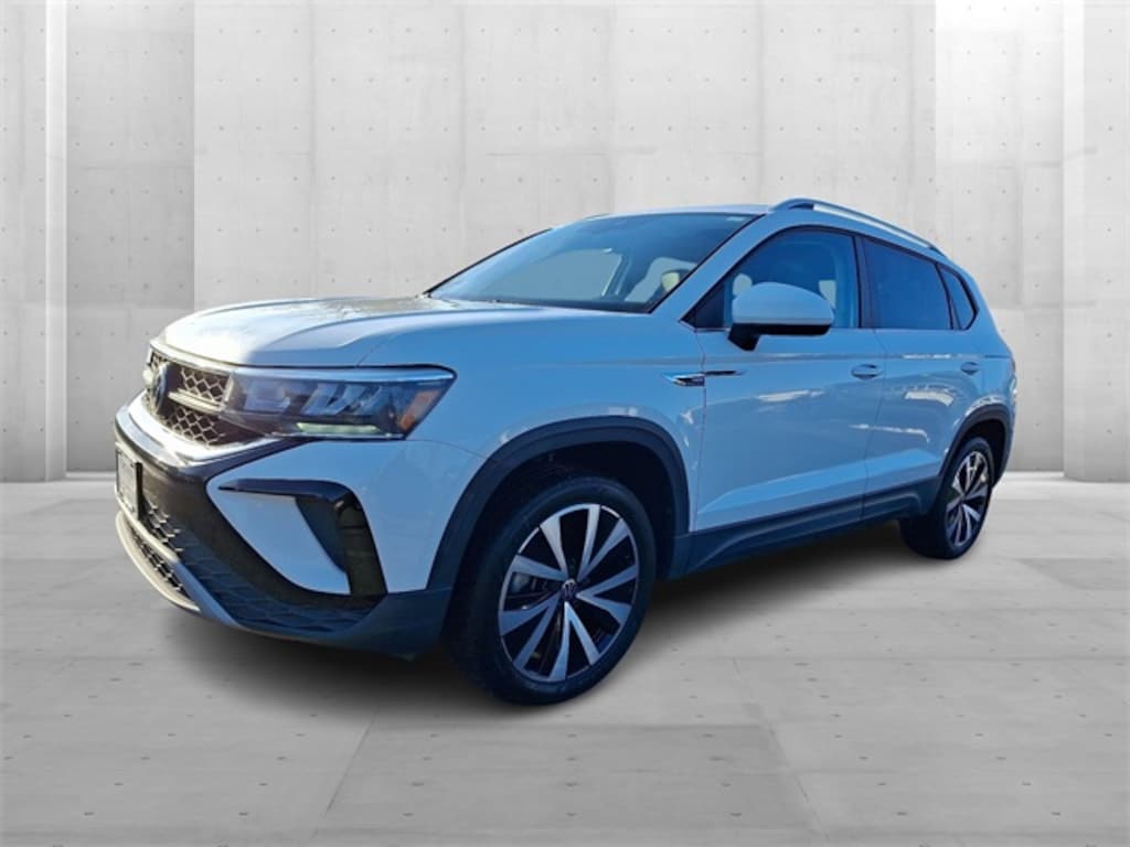 This 2022 Volkswagen Taos 1.5T SE in Pure White features: 1.5L I4 Turbocharged DOHC 16V LEV3-SULEV30 158hp 8-Speed Automatic with Tiptronic FWD CARFAX One-Owner. Clean CARFAX.