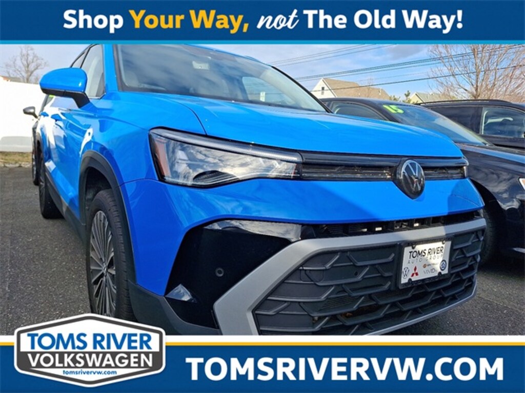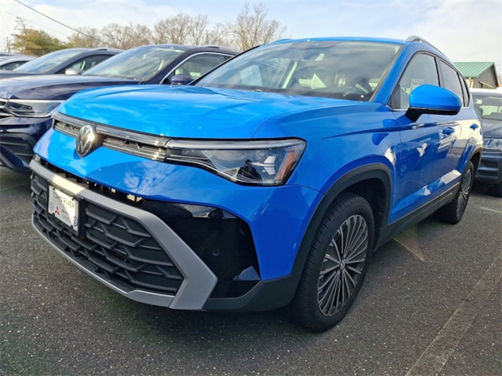This 2025 Volkswagen Taos 1.5T SE in Cornflower Blue features: 1.5L I4 Turbocharged DOHC 16V LEV3-SULEV30 174hp 8-Speed Automatic with Tiptronic FWD CARFAX One-Owner. Clean CARFAX.