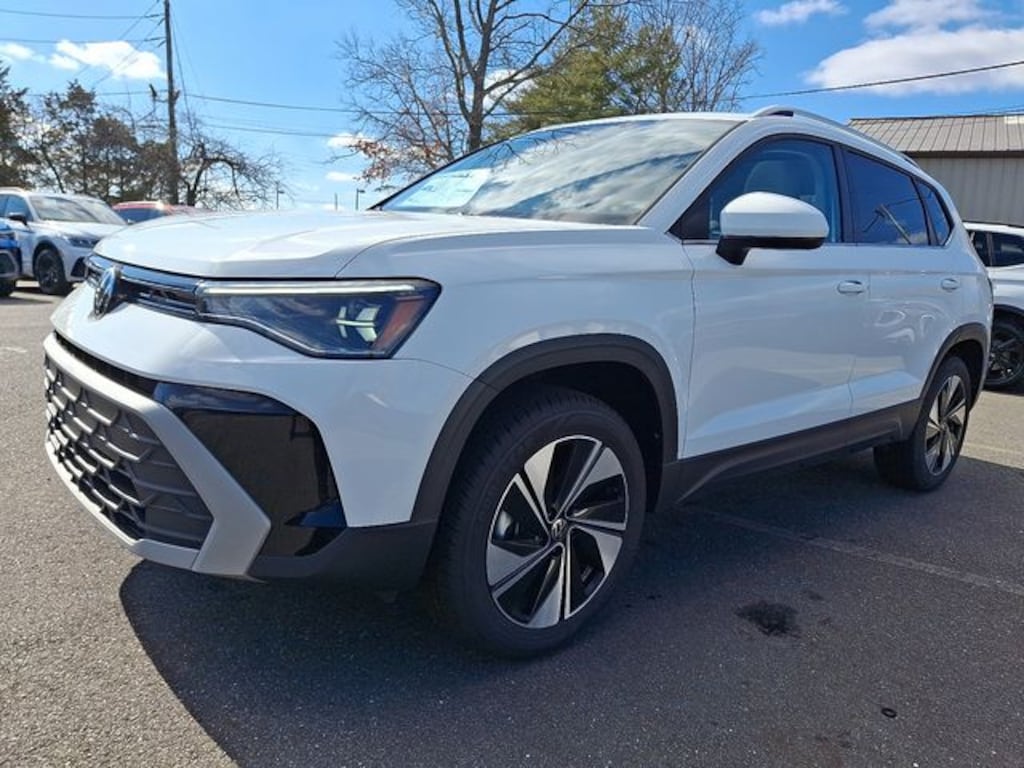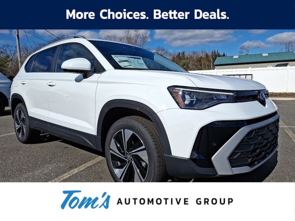 This 2025 Volkswagen Taos 1.5T SE in Pure White features: 1.5L I4 Turbocharged DOHC 16V LEV3-SULEV30 174hp 8-Speed Automatic with Tiptronic AWD CARFAX One-Owner.