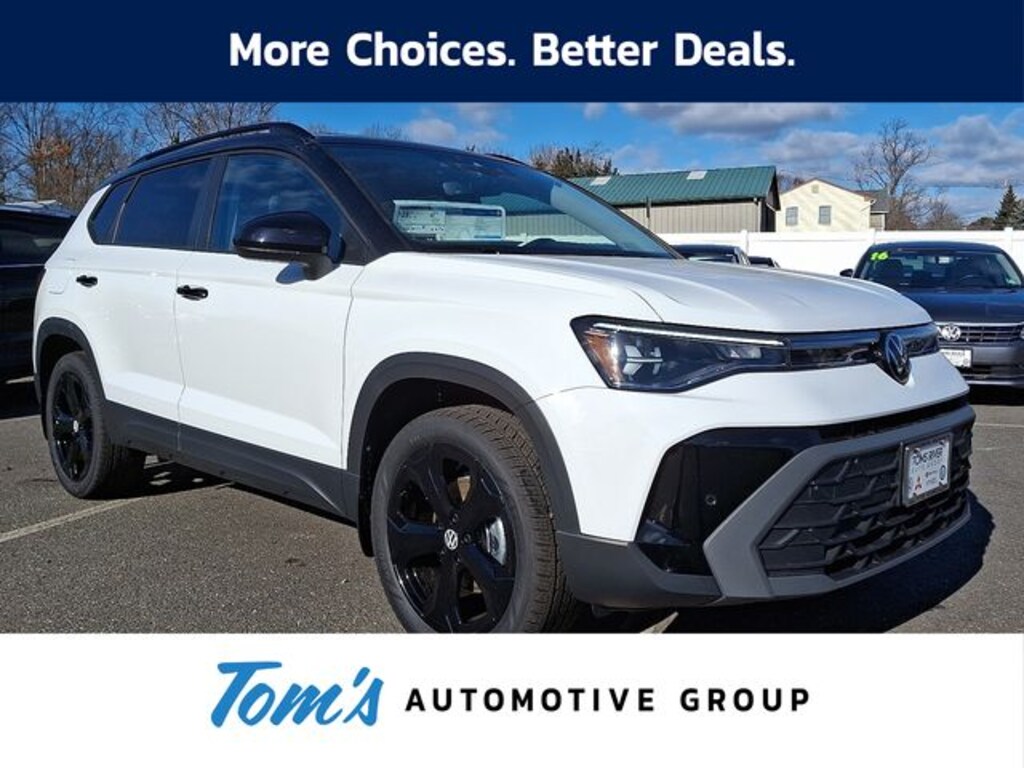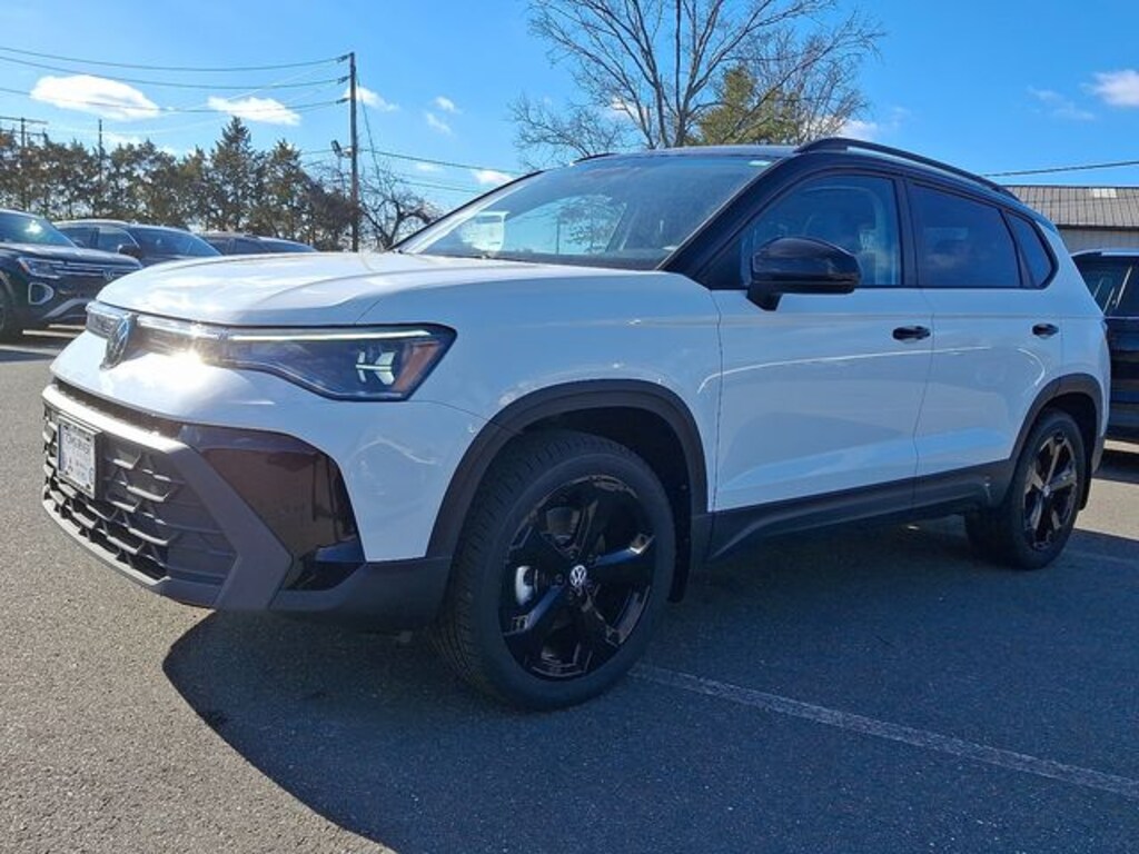 This 2025 Volkswagen Taos 1.5T SE Black in Pure White w/Deep Blk Rf features: 1.5L I4 Turbocharged DOHC 16V LEV3-SULEV30 174hp 8-Speed Automatic with Tiptronic AWD CARFAX One-Owner. Clean CARFAX.
